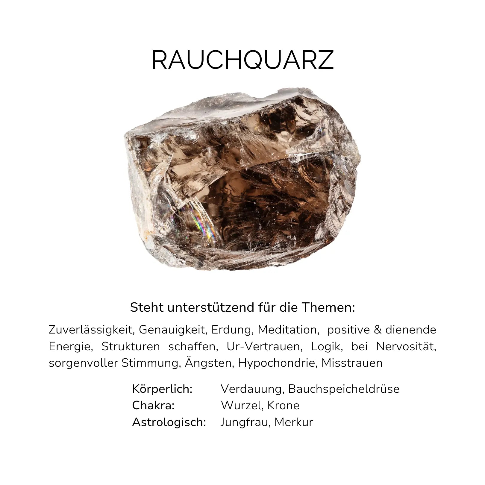 Rauchquarz wird nachgesagt, Erdung und innere Ruhe zu schenken, während er Zuverlässigkeit und klare Strukturen fördert.