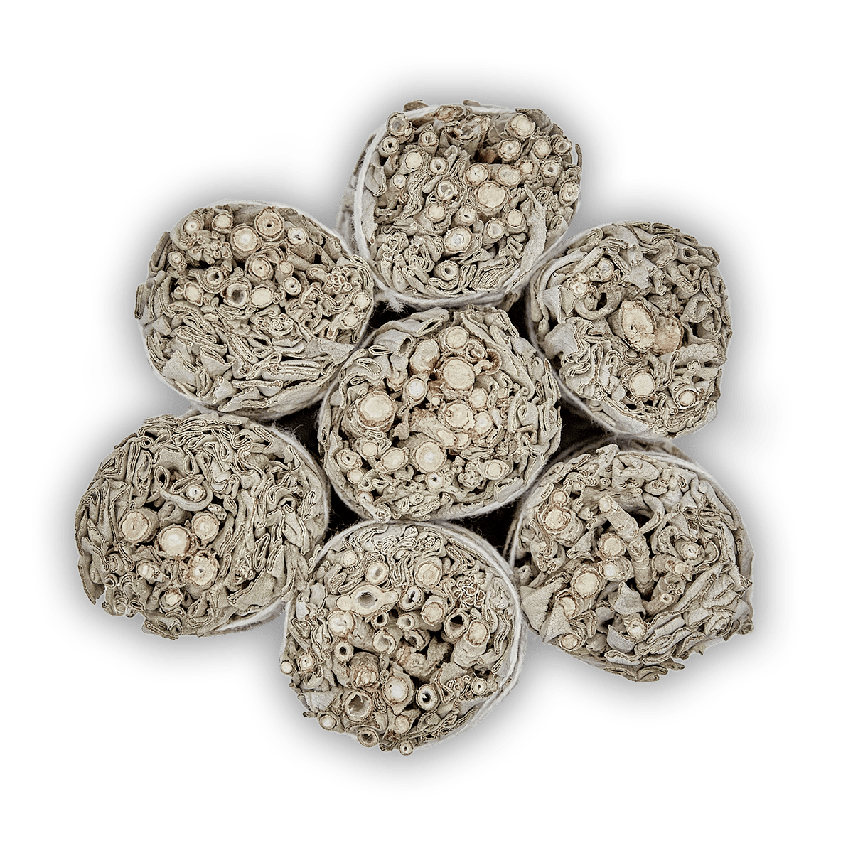 Die handgebundenen weißen Salbei Bündel in BIO Qualität stammen aus Kalifornien und haben eine Länge von etwa 11 cm und einen Durchmesser von etwa 3 cm.